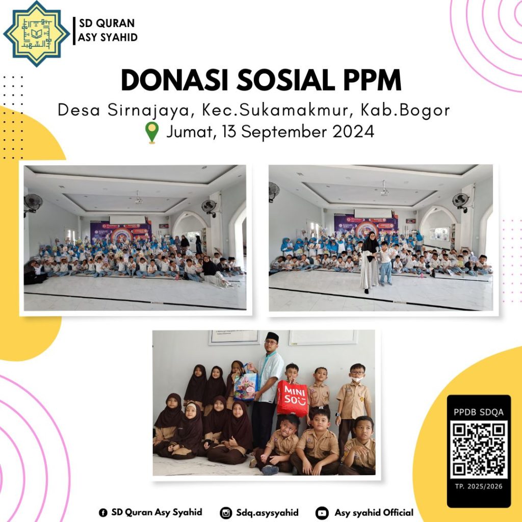 Alhamdulillah telah di serahkan 80 paket alat tulis , Paket Sembako dan Baju layak pakai dari Siswa/i SD Quran Asy Syahid untuk kegiatan Sosial PPM SMA Quran Asy Syahid di Desa Sirnajaya, Kec.Sukamakmur. Kab Bogor.