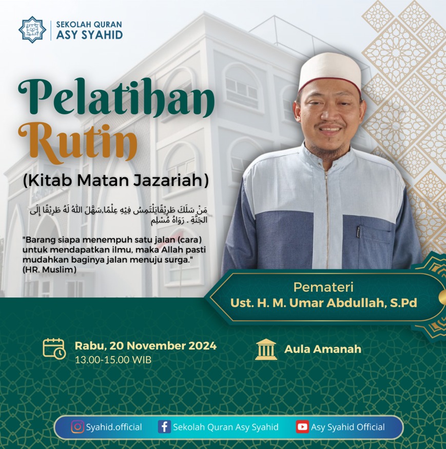 Mengundang untuk menghadiri agenda pelatihan dengan Al Qori Ustadz H. M. Umar Abdullah, S.Pd. yang akan dilaksanakan pada :
