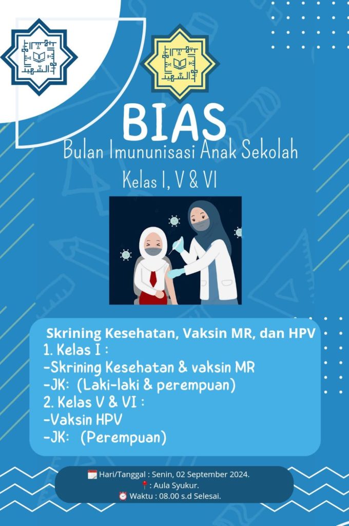 Untuk itu, SD Quran Asyahid kelas I, II, dan V akan melaksanakan Kegiatan Imunisasi.