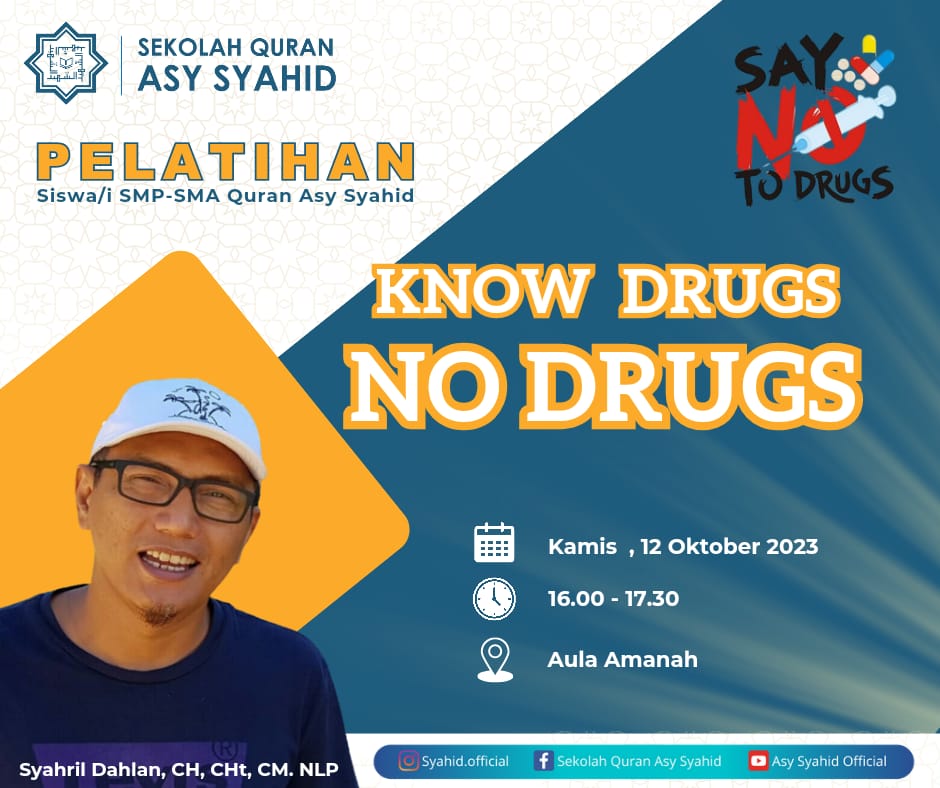 Narkoba bukanlah sekedar masalah individu, tetapi juga malasah sosial yang dapat merusak kehidupan, keluarga, dan masyarakat secara keseluruhan. Dalam pelatihan ini, siswa/i akan diberikan pengetahuan yang mendalam tentang narkoba, cara-cara pencegahannya, serta peran masing-masing dari kita dalam memerangi penyalahgunaan narkoba. Pelatihan ini akan dilaksanakan :