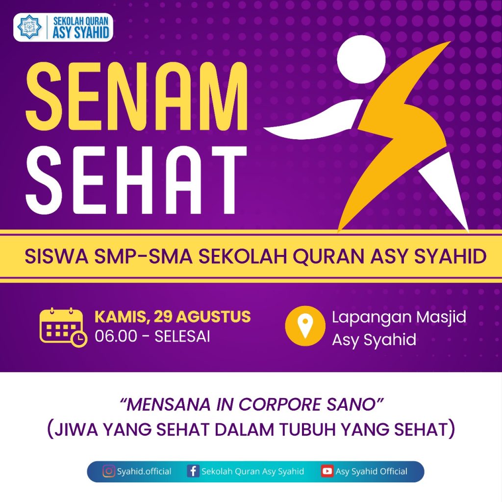 Dalam rangka menjaga kesehatan dan kebugaran, Sekolah Quran Asy Syahid mengadakan *Senam Sehat Bersama* untuk siswa/ siswi SMP-SMA pada: