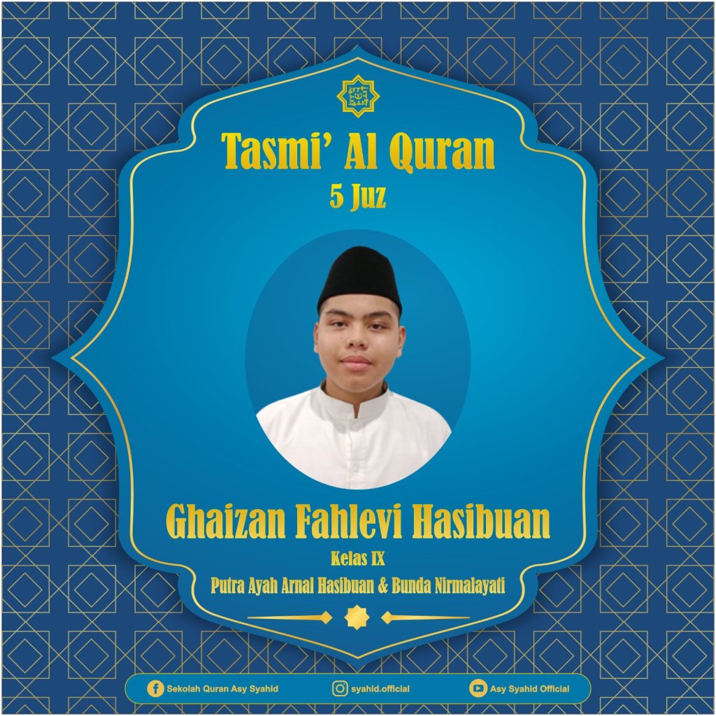 Alhamdulillah dengan penuh rasa syukur ananda Ghaizan Fahlevi Hasibuan telah lulus pra tasmi, lulus MHQ 5 Juz dan telah mentasmikan seluruh hafalannya pada :
